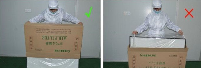 5、在搬運過程中,必須按高效空氣過濾器的對角線方向搬運,搬運人員不能戴手套。